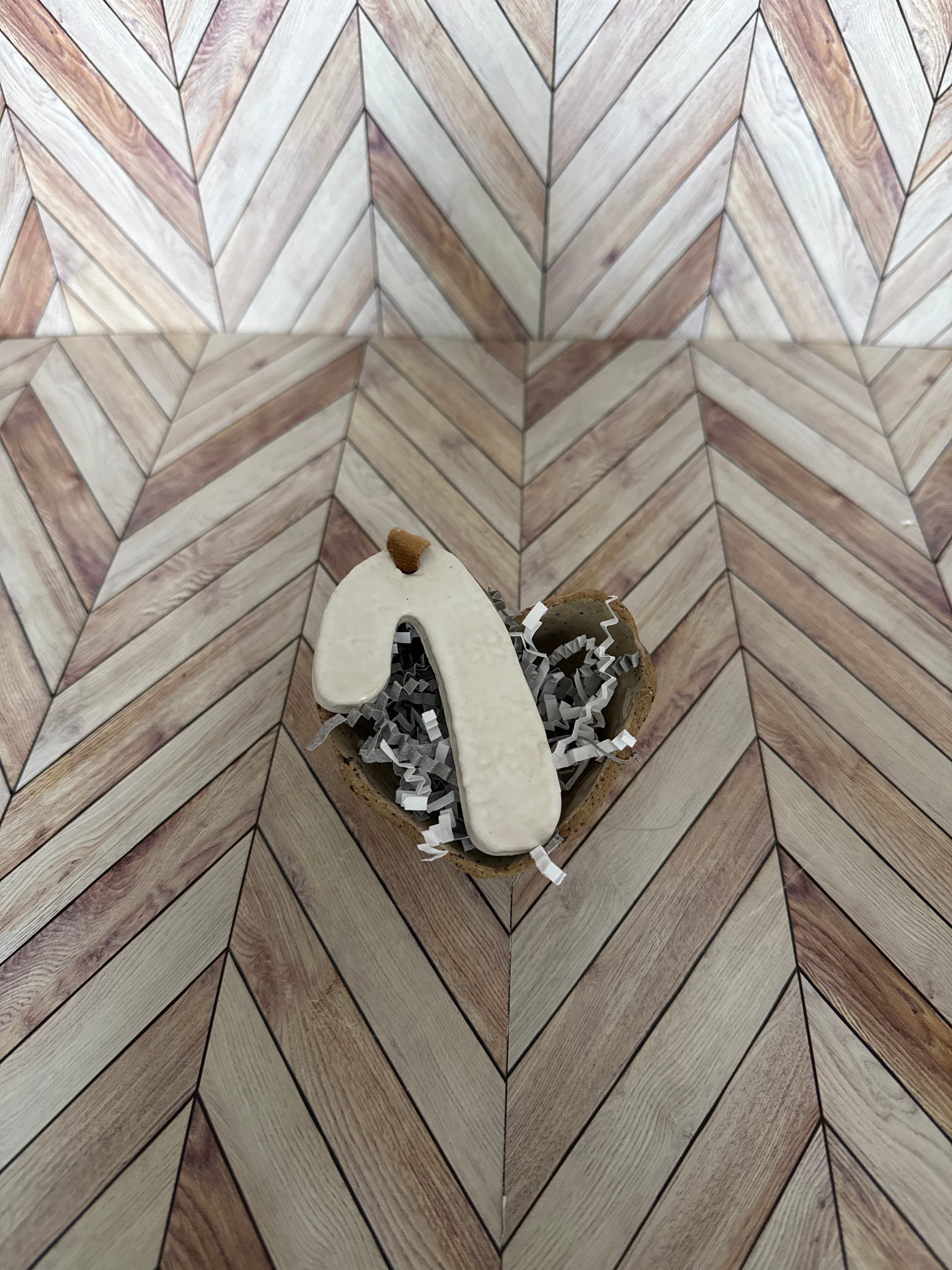 Enhance your space with Bea 96, a textured ceramic heart tray and 1 white candy cane ornament that brings versatility and sophistication to any occasion. Perfect for use as a small bud vase.