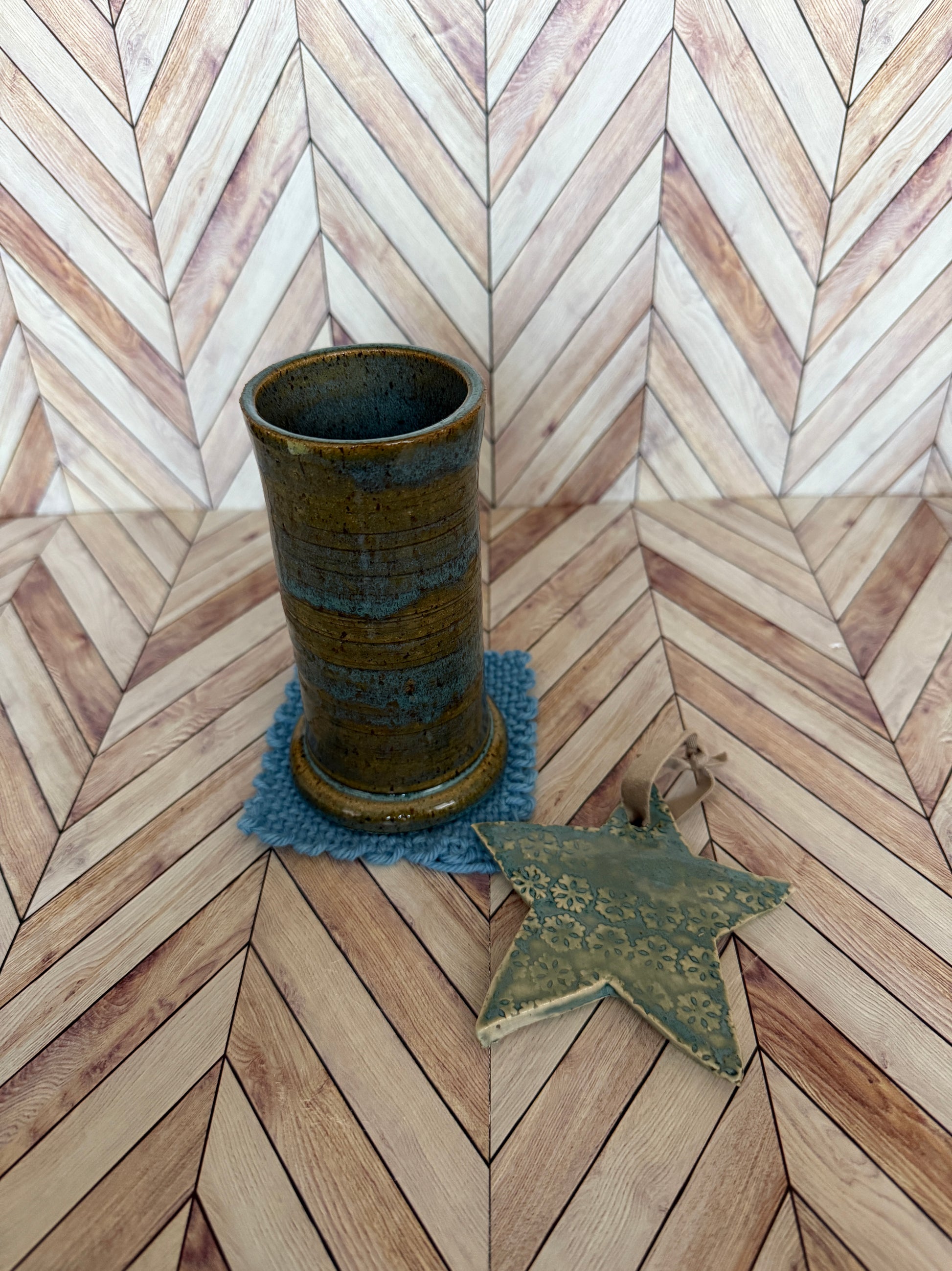 Enhance your space with Bea 85, a blue & green speckled vase and holiday ornament that brings versatility and sophistication to any occasion. Perfect for use as a small bud vase.