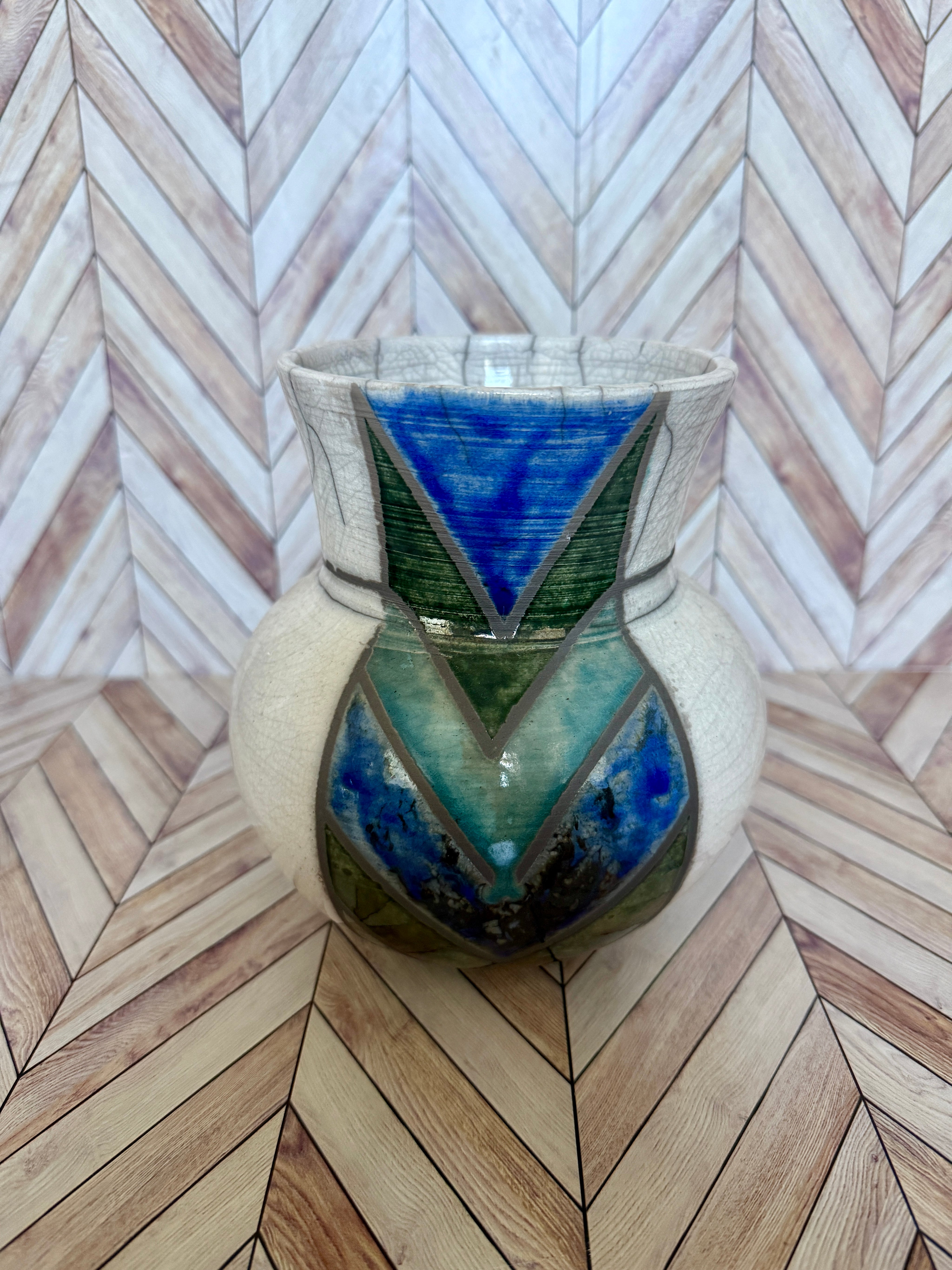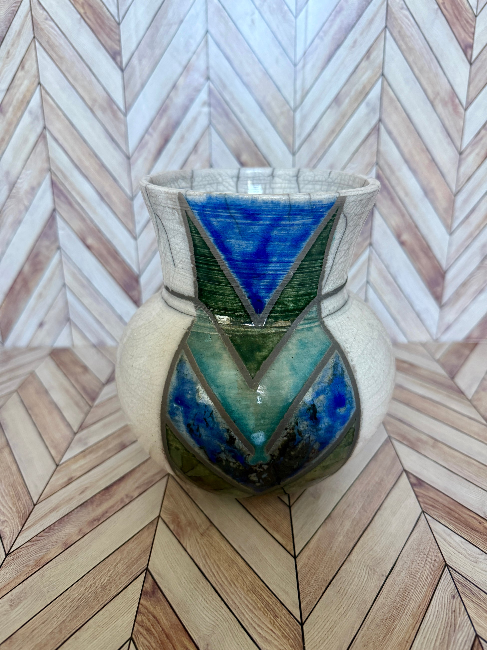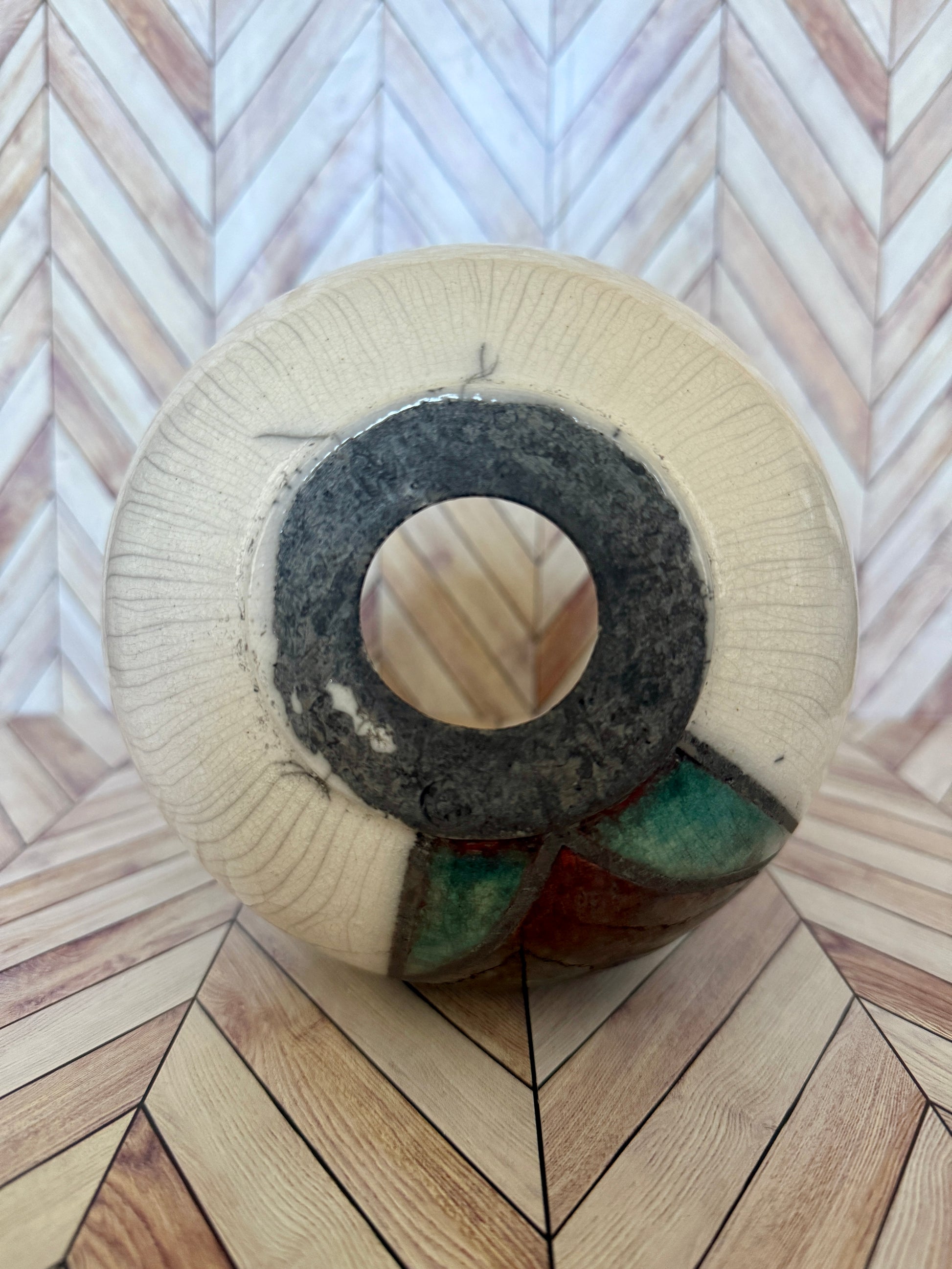 - Special Care Instructions: As a raku piece, it’s not food-safe, and water must be contained in another vessel if used as a vase.