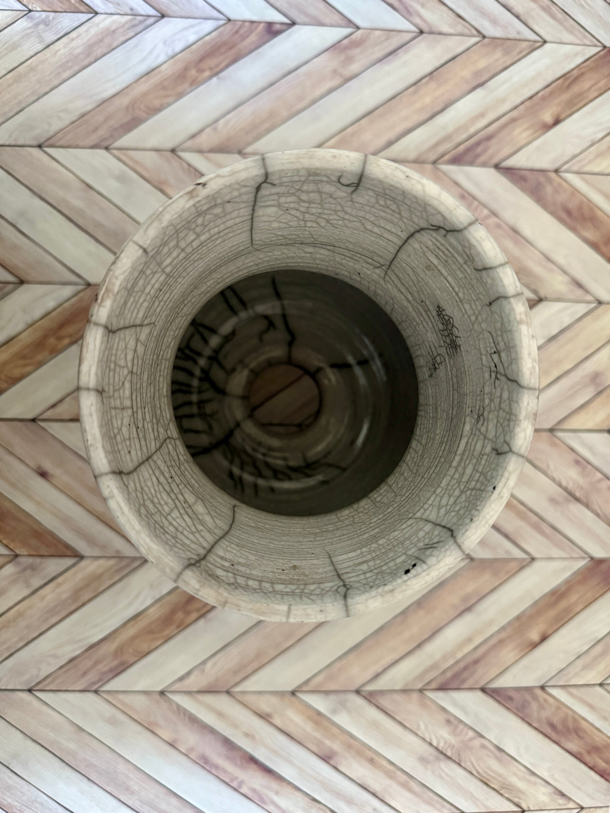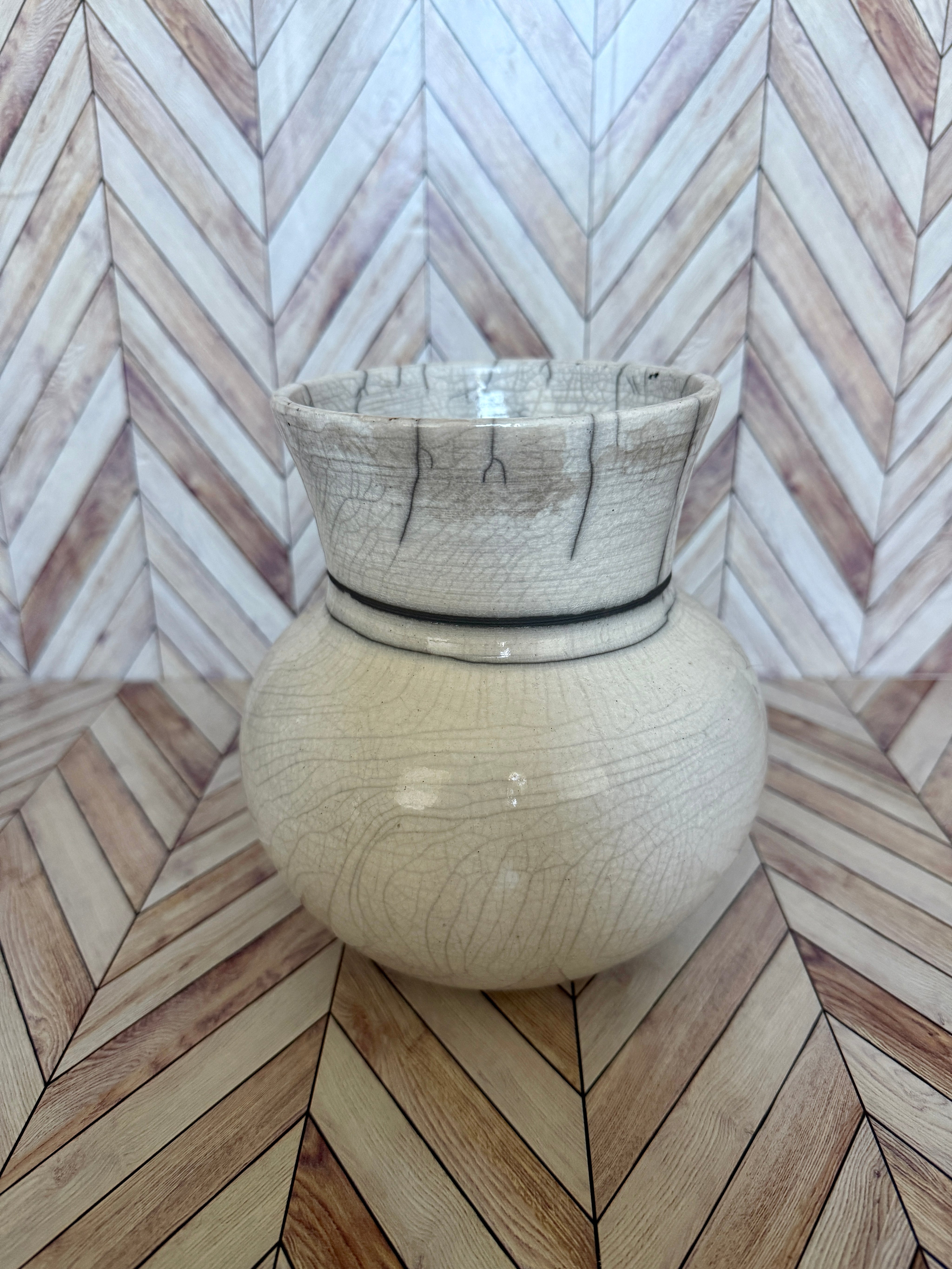 Elevate your home decor with Bea 103, a handcrafted raku ceramic piece. This piece was crafted in partnership with BISC Pottery Studio owner and glazed by ru•bea studio.