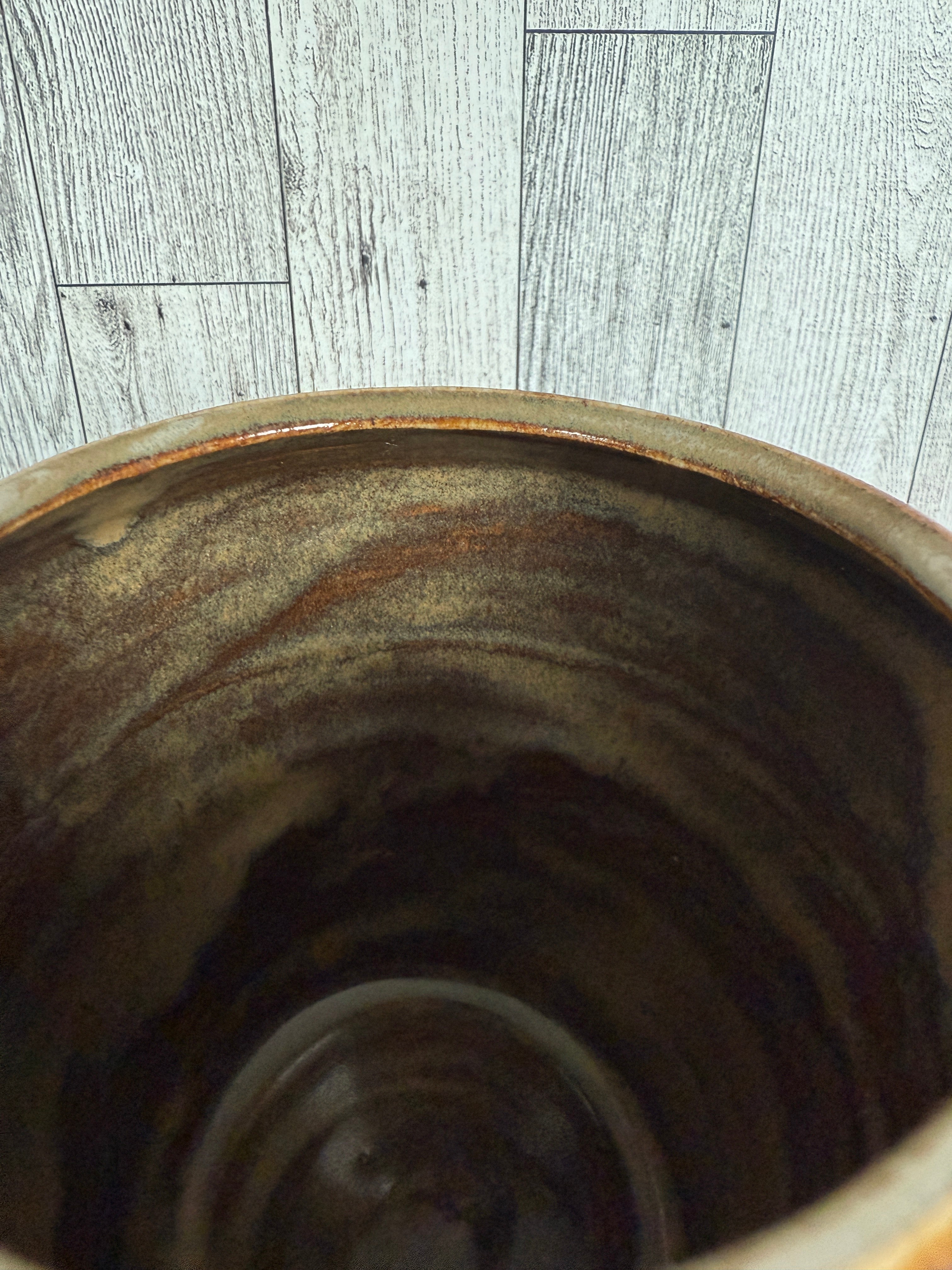 Slight glaze chipping at bottom of vase, minimally impacting aesthetic. Chipping shown in images and reflected in pricing accordingly.