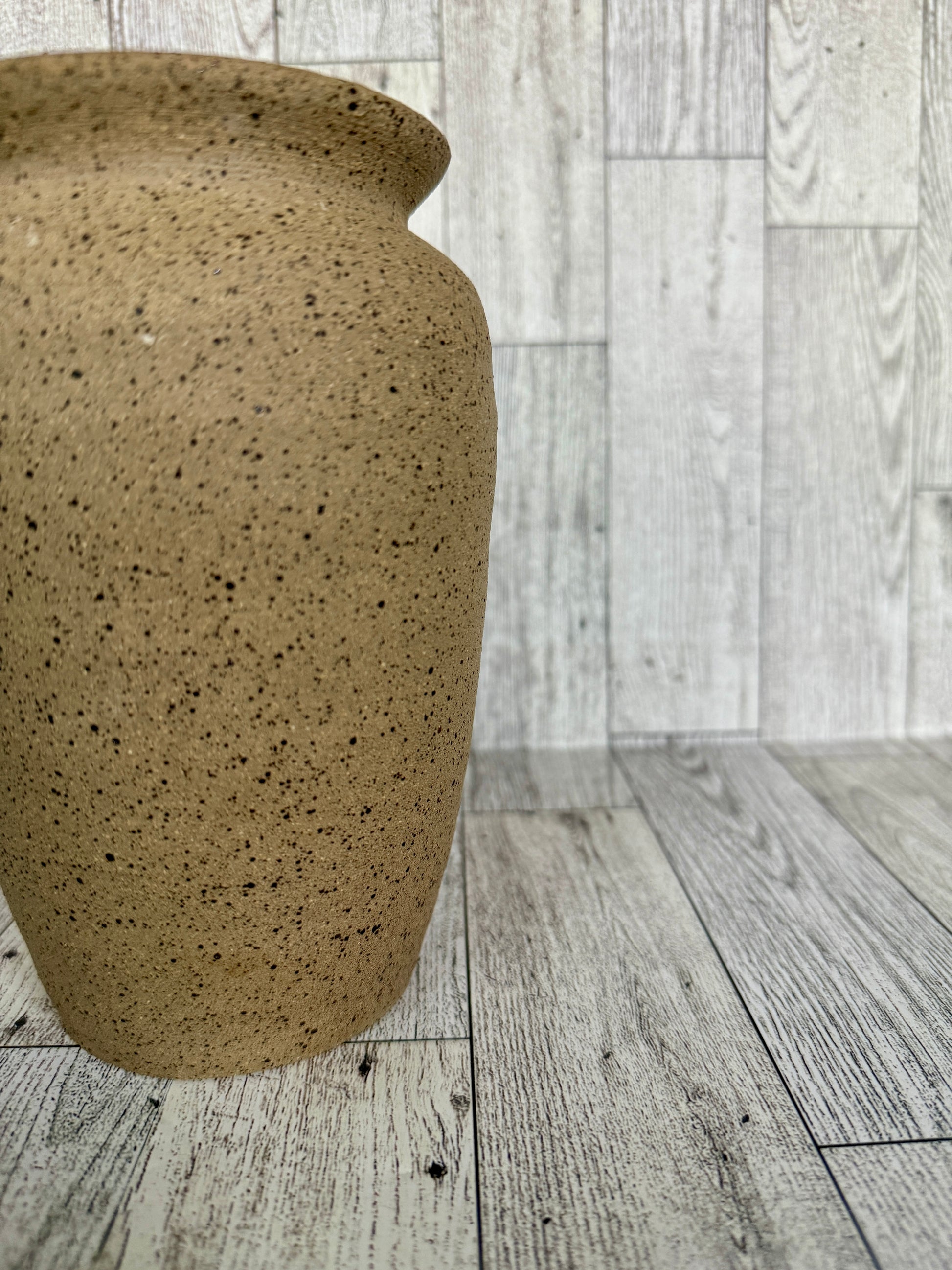Elevate your floral decor holder with Ruby 120, a raw speckled clay vase that is perfect for any space!